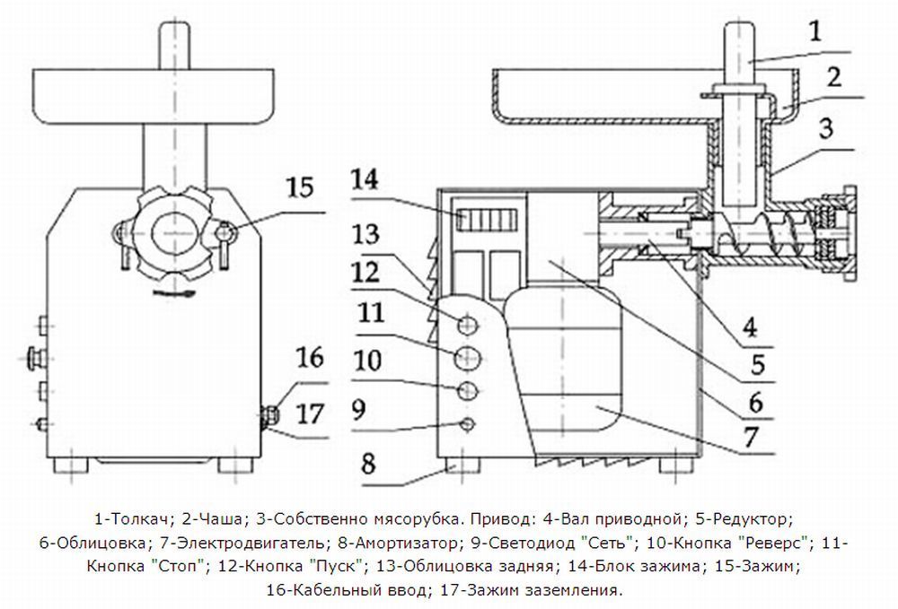 Мясорубка оснащена функцией "Реверс", которая позволяет при наматывании жил освободить шнек без дополнительной разборки машин.