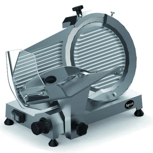 Слайсер Apach ASL220 предназначен для нарезки различных продуктов на предприятиях общественного питания и торговли. Модель оснащена вентилируемым мотором и встроенным затачивающим устройством. Корпус выполнен из литого анодированного алюминиевого сплава, нож - из кованой углеродистой стали 100Cr6.