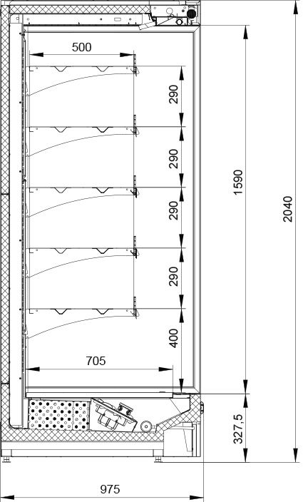 • 4 ряда полок глубиной 500 мм с регулируемым наклоном