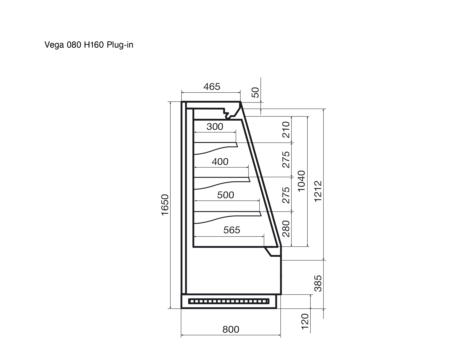 📖 Витрина холодильная Vega 090 H160 125 Plug-in +1...+7 (без боковин): характеристики, описание и документация