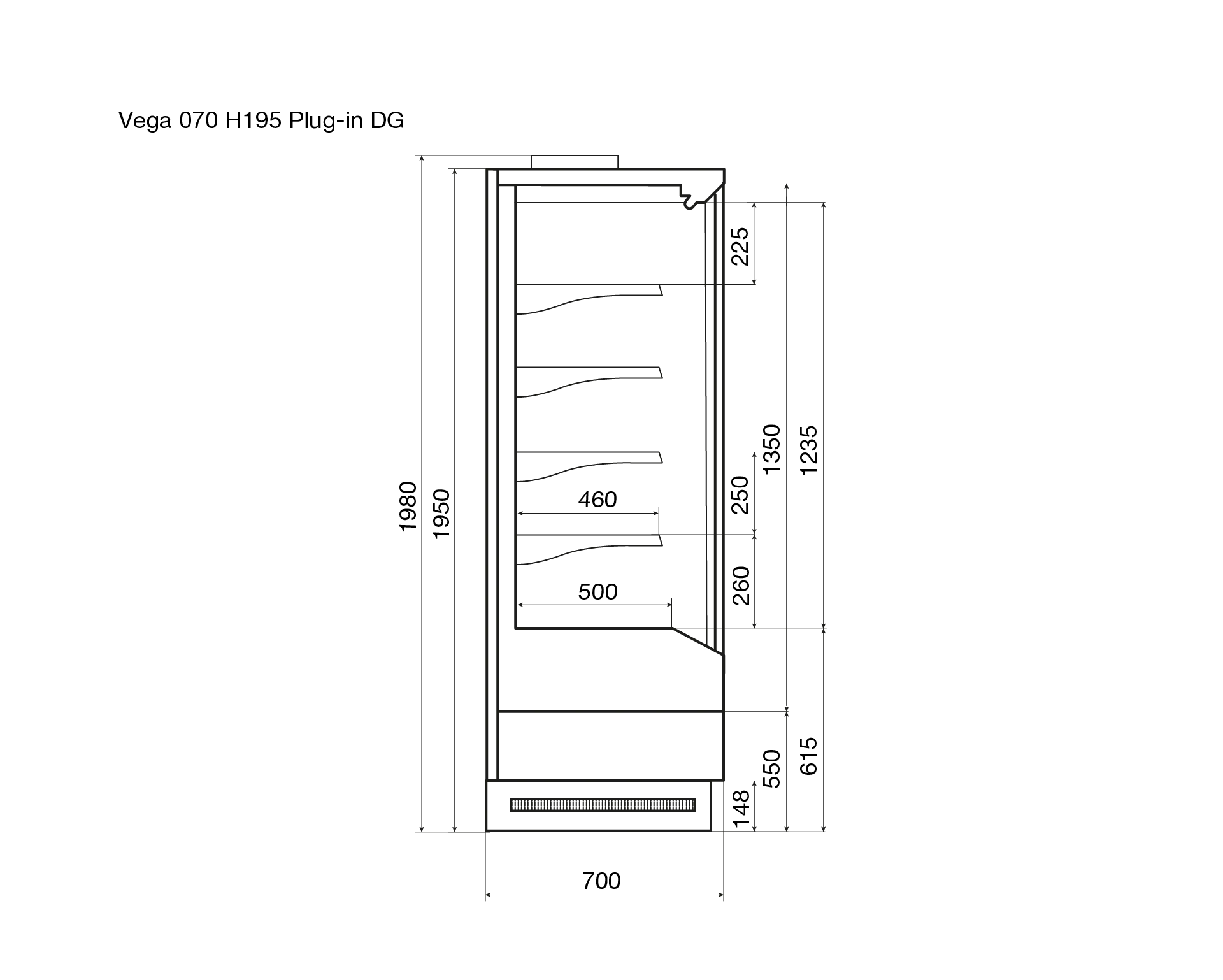 📖 Витрина холодильная Vega DG 070 H195 Plug-in 60: характеристики, описание и документация
