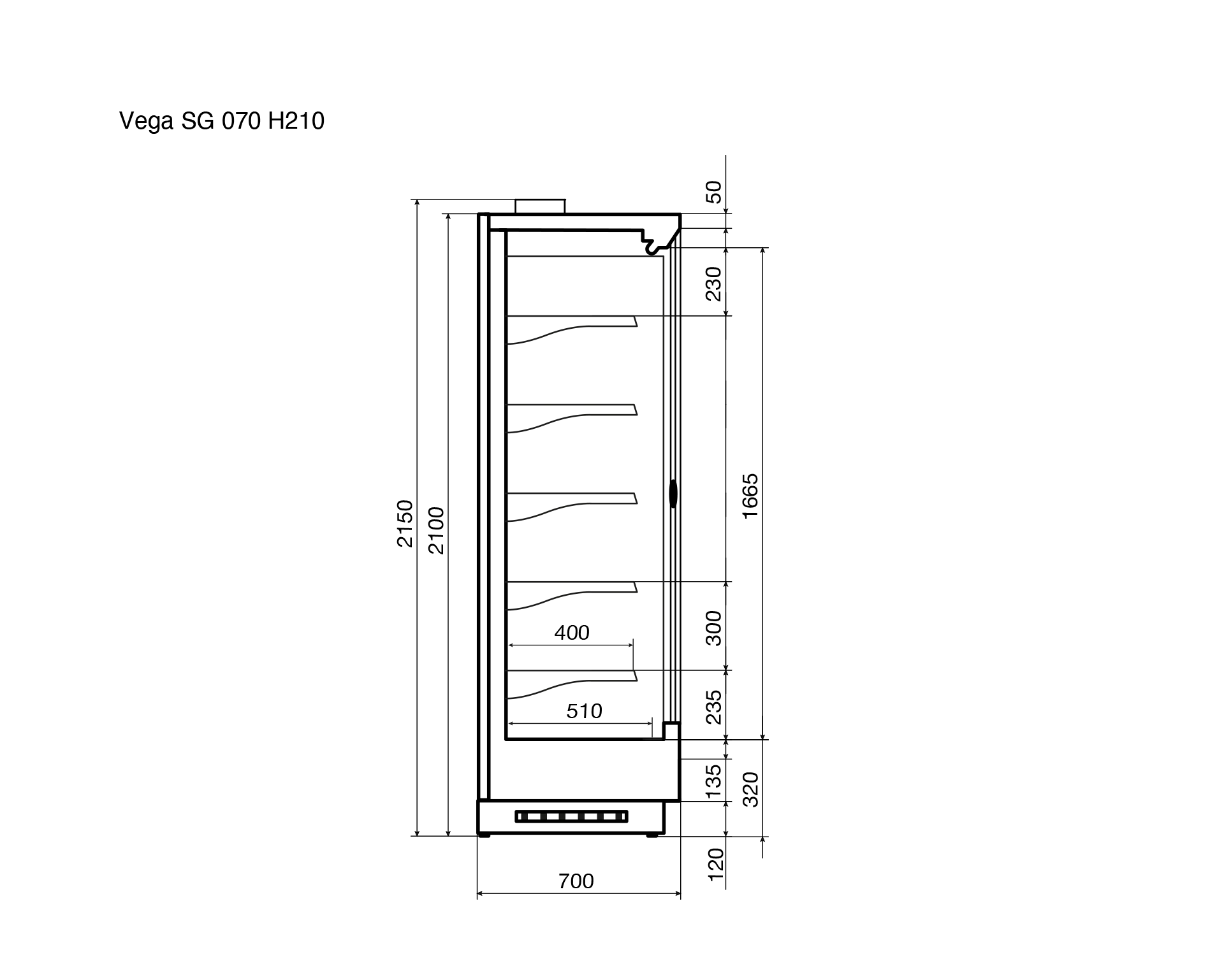 Витрина холодильная Vega SG/DG 070 H210 125 -1...+2 (с боковинами)
