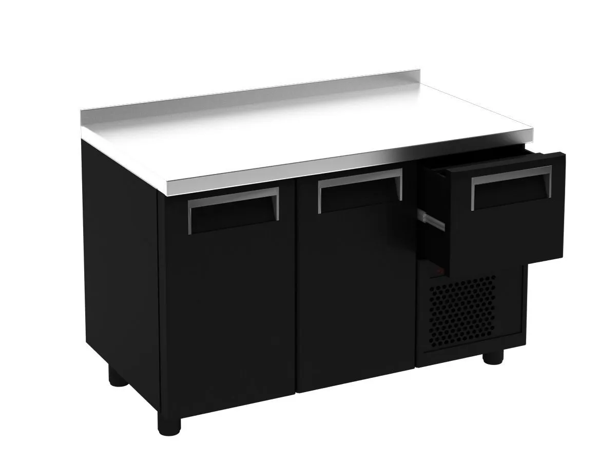 Холодильный стол Carboma T57 M2-1-G 9006-1(2)9 (BAR-250С) предназначен для размещения кофемашин и охлаждения и хранения молока и кофейных зерен на предприятиях общественного питания и торговли. Модель оснащена 4 полками, охлаждаемым ящиком под агрегатом, планкой под выбивание холдера и регулируемыми ножками высотой от 90 до 110 мм. Цельнозаливной корпус выполнен из черной крашеной стали, столешница - из нержавеющей стали, дверцы - из стекла.
