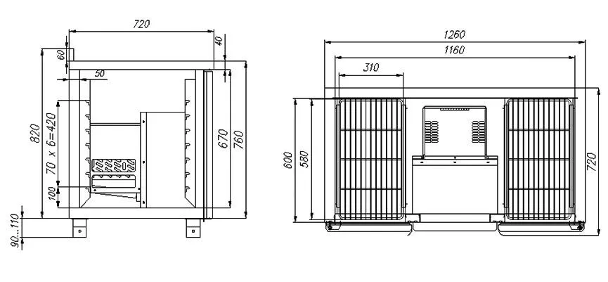 Холодильный стол Сarboma T70 M2-1-G 0430 (2GNG/NT) предназначен для раскатки теста, обработки ингредиентов для приготовления блюд, охлаждения и кратковременного хранения скоропортящихся продуктов и напитков на предприятиях общественного питания и торговли. Модель оснащена 4 полками и регулируемыми ножками высотой от 90 до 110 мм. Цельнозаливной корпус выполнен из нержавеющей стали с теплоизоляцией из пенополиуретана, дверцы - из стекла.