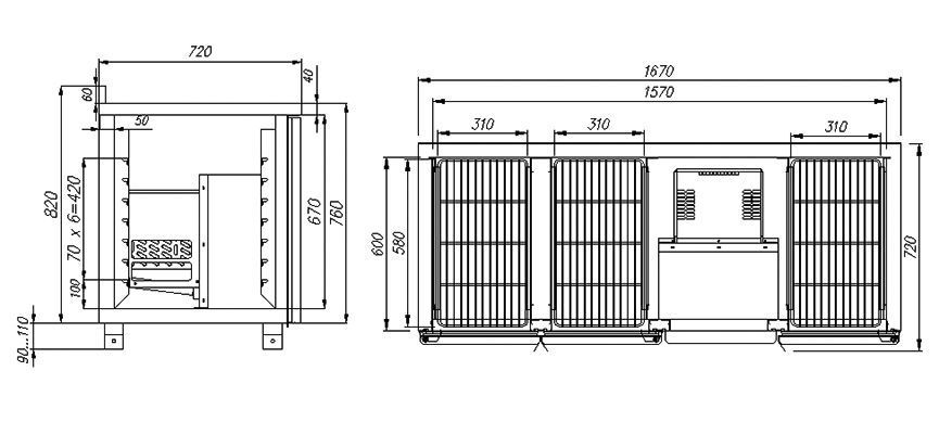 Стол холодильный Carboma T70 M3-1-G 0430 (3GNG/NT) имеет несколько основных назначений - охлаждение и хранение продуктов питания внутри охлаждаемых объемов, нарезка и приготовление гастрономических изысков и блюд на нержавеющей поверхности холодильного стола, а также можно устанавливать на его поверхность технологическое и барное оборудование. Корпус является цельнозаливным со столешницей из нержавеющей стали, толщина металла 45 мм, снабжен динамической системой охлаждения с LED подсветкой.