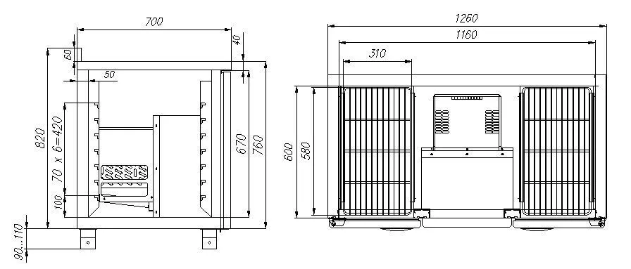 Холодильный стол Carboma T70 M2-1 9006 (2GN/NT) предназначен для раскатки теста, обработки ингредиентов для приготовления блюд, охлаждения и кратковременного хранения скоропортящихся продуктов и напитков на предприятиях общественного питания и торговли. Модель оснащена дверью с доводчиком и регулируемыми по высоте ножками высотой от 90 до 110 мм. Цельнозаливной корпус выполнен из оцинкованной стали толщиной 50 мм, столешница - из нержавеющей стали.