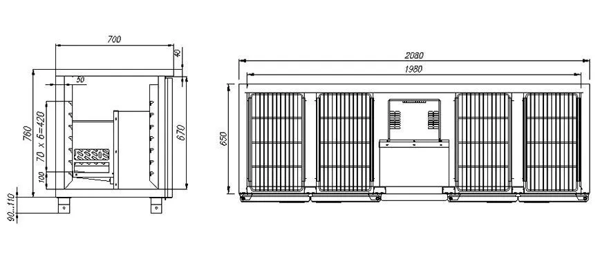 Стол холодильный Полюс T70 M4-1 9006 (4GN/NT) имеет несколько основных назначений - охлаждение и хранение продуктов питания внутри охлаждаемых объемов, нарезка и приготовление гастрономических изысков и блюд на нержавеющей поверхности холодильного стола, а также можно устанавливать на его поверхность технологическое и барное оборудование. Корпус является цельнозаливным со столешницей из стали, толщина металла 50 мм, снабжен динамической системой охлаждения с LED подсветкой.