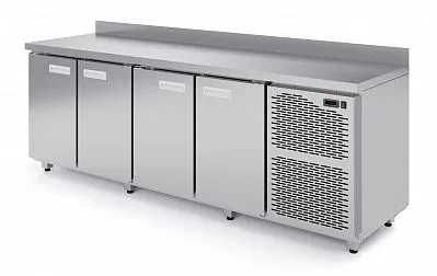 Стол морозильный МХМ СХН-4-60 оснащён прочной столешницей с бортом, отлично подходящей для любых технологических процессов, и вместительным морозильным шкафом, оборудованным 4-мя дверьми. Конструкция дверей позволяет удобно и быстро загружать и доставать продукты. Установлен импортный малошумный компрессор. Настройка температурного режима посредством электронных блоков управления. Характеристики и особенности модели: исполнение — с отбортовкой; 4 распашные глухие дверки; холодильный агрегат установлен в боковом отсеке; глубина — 600мм; управление — электронный блок; охлаждение вентилируемое, динамика; фактические температуры — -18С; оттайка автоматическая, ТЭНами; охлаждаемый запасник; подключение — 220V; мощность — 9 кВт/в сутки.