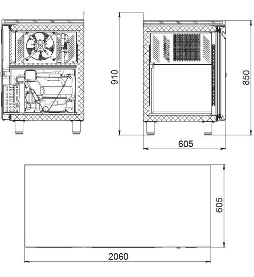 Окраска корпуса и дверей в стильный серый цвет, элегантный общий дизайн стола, применение столешницы из нержавеющей стали делают модель незаменимой как на открытой кухне изысканного ресторан, так и в продуктовом бутике, в кафе, пекарне, супермаркете и т.п.