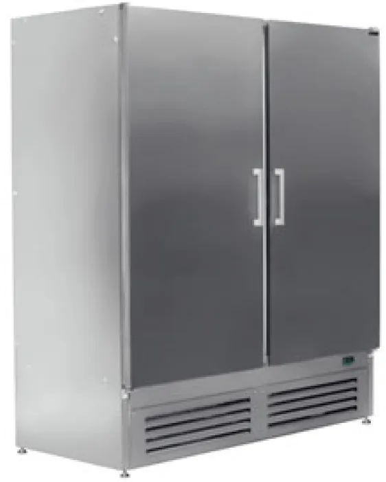 Описание ШКУП1ТУ-1,6 М (В/Prm, 0…+8/ -18) - комбинированный холодильный шкаф объемом 1600л с двумя металлическими распашными дверьми. Оснащен двумя компрессорами «Danfoss», двумя микропроцессорными блоками управления, восемью полками с бортиками, металлическими держателями полок. Использует хладагент R 404 А. Тип охлаждения - динамическое. Тип оттаивания - автоматический.