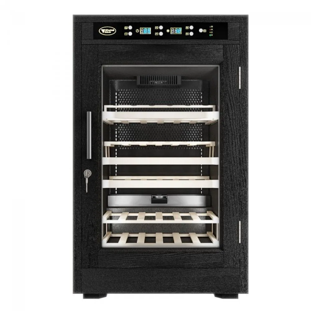 Классический винный шкаф Cold Vine C46-WB1 (Modern) является стильным дополнением к вашему дому и прекрасным помощником в вопросе хранения вина. Объем данного шкафа составляет 138 литров, а это означает, что вы с легкостью можете разместить внутри него до 46 бутылок вина типа Бордо объемом по 0, 75 литра. Данная модель является отдельностоящей, а это означает что у вас появится не просто многофункциональный помощник, но также и стильное дополнение к вашему интерьеру. Данный винный шкаф не подразумевает разделения на зоны, соответственно, вы можете разместить в нем вина только одного типа. Температурный режим может быть выставлен любой в диапазоне от +5 до +22 ˚С. Уникальная опция линейки данных шкафов - наличие цифрового контроля влажности. Тип охлаждения - компрессорный. Корпус данного винного шкафа выполнен из натурального дерева классического черного цвета (шпон дуба). В базовой комплектации имеются деревянные выкатные полки в количестве 4 штук.