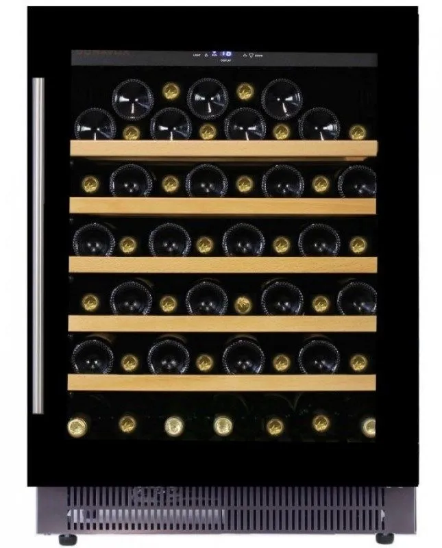 Шкаф оснащен электронной панелью управления, с помощью которой пользователь выбирает необходимый температурный режим работы аппарата. В модель DAU-52.146B встроены такие функции как: функция звукового оповещения об открытой двери, энергосберегающая функция "Отдых", позволяющая при работающем холодильнике (работающем охлаждении вина) на время отключить дисплей, подсветку и звуковые оповещения и функция увеличения влажности воздуха для создания оптимальных условий для хранения и дозревания вина.