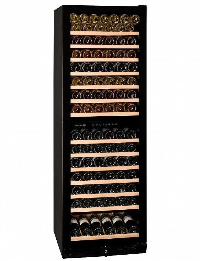 Холодильник для вина DX-166.428DBK с вместительной холодильной камерой и двумя температурными зонами.