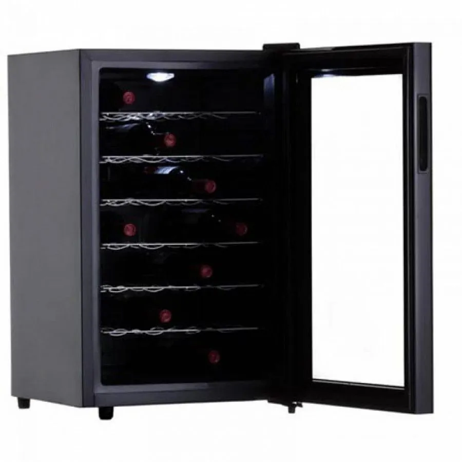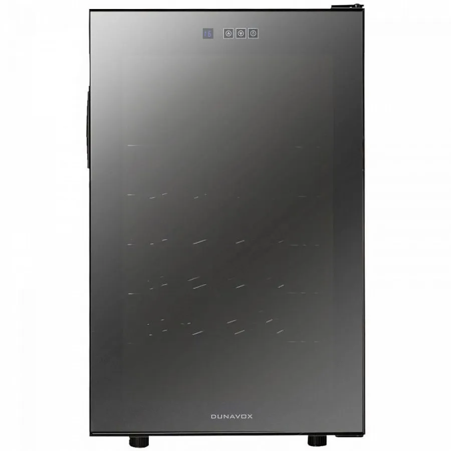 Модель выполнена в элегантном черном корпусе, комплектуется шестью стальными хромированными полками. Дверь винного шкафа DX-28.65C выполнена из зеркального тонированного стекла с узкой пластиковой рамкой черного цвета, и открывается с помощью удобной встроенной ручки сбоку.