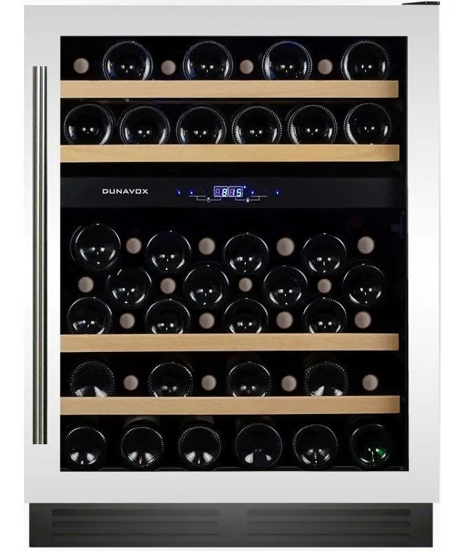 Винный шкаф DX-53.130DWK/DP из специальной серии винных холодильников для встройки под столешницу. Модель имеет две зоны охлаждения, в каждой из которых можно установить температуру от +5 до +22 гр.Ц. Шкаф оснащен новым, мощным компрессором, с пониженным энергопотреблением и шумом, внутренними вентиляторами в каждой зоне для равномерного доступа холодного воздуха ко всем полкам шкафа и нагревательным элементом. Комплектуется холодильник DX-53.130DWK/DP четырьмя нелакированными деревянными полками и системой поддержания оптимальной влажности внутри винного шкафа.