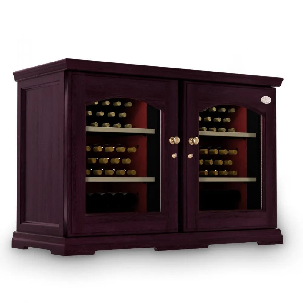Шкаф оснащен статической системой охлаждения на базе компрессора SECOP (Danfoss), которая понижает температуру вина и сохраняет оптимальную влажность внутри камеры. Комплектуется шкаф шестью полками.