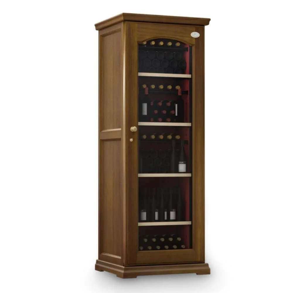 Модель оснащена статической системой охлаждения на базе компрессора SECOP (Danfoss), которая кроме охлаждения вина еще и сохраняет оптимальную влажность внутри камеры. Комплектуется шкаф девятью полками.