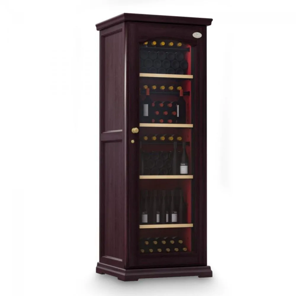Модель оснащена статической системой охлаждения на базе компрессора SECOP (Danfoss), которая кроме охлаждения вина еще и сохраняет оптимальную влажность внутри камеры. Комплектуется шкаф девятью полками.