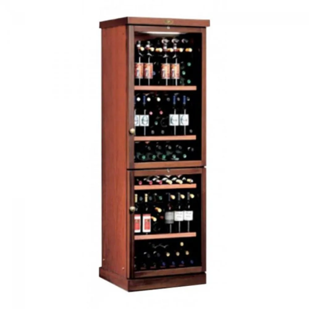 Модель оснащена статической системой охлаждения на базе компрессора SECOP (Danfoss), которая кроме охлаждения вина еще и сохраняет оптимальную влажность внутри камеры. Комплектуется шкаф девятью деревянными полками.