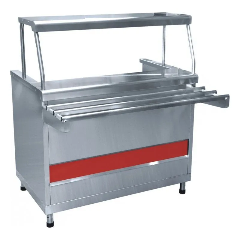 Мармит 1-х блюд Abat ПМЭС-70КМ напольное тепловое оборудование для кратковременного поддержания при температуре выдачи первых блюд: супов, ухи, борща или бульонов. Конфорки предназначены для установки наплитных котлов большого объема. Может устанавливаться как отдельное оборудование или в составе профессиональной линии раздачи Аста. Корпус в стандартном исполнении может декорироваться «под дерево».