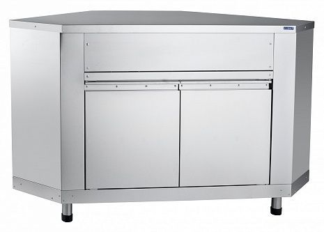 Модуль поворотный Abat МП-90КМ-01 внутренний предназначен для выкладки тарелок, стаканов и др., отличен в использовании на линиях раздачи общественного питания. Копус сделан из нержавеющей стали AISI 304.