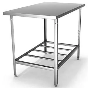 Столы производственные СПО островные с решетчатой полкой HESSEN предназначены для предприятий торговли и используются в кулинарных цехах и в моечных отделениях для разделывания и обработки пищевых продуктов, а также в качестве вспомогательной поверхности для оборудования. Максимально равно распределенная нагрузка на столешницу - 70 кг.,на полку максимальная нагрузка - 20 кг.
