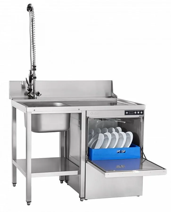 Посудомоечная машина с фронтальной загрузкой Abat МПК-500Ф-01-230 используется на предприятиях общественного питания и торговли для мойки тарелок, стаканов, бокалов, столовых приборов, а также гастроемкостей и противней. Модель оснащена электронной панелью управления и регулируемыми по высоте ножками.