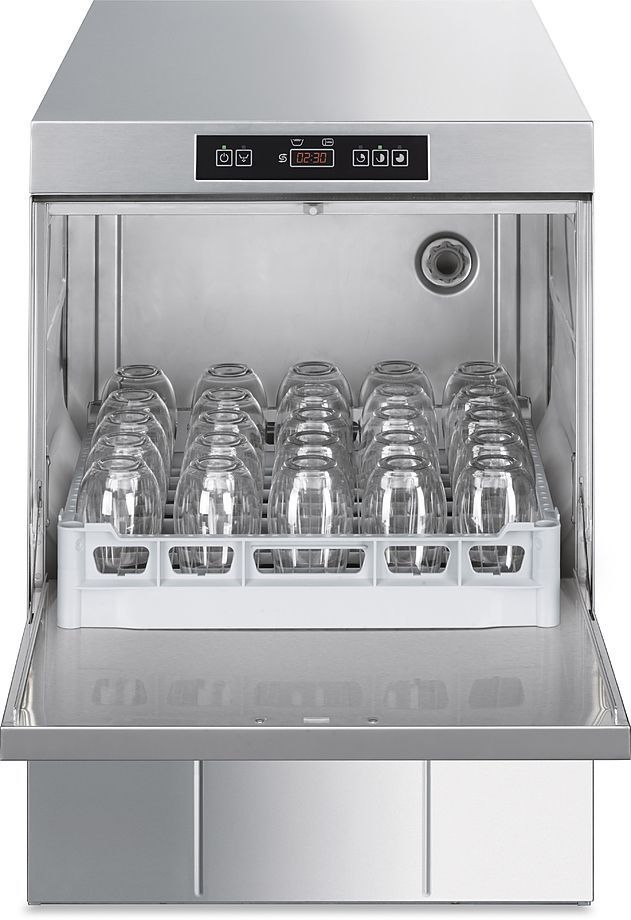 SMEG UD503D используется на предприятиях общественного питания и торговли для мойки столовых приборов, тарелок, стаканов, чашек и другой посуды. Модель оснащена электронной панелью управления. Корпус выполнен из нержавеющей стали AISI 304.