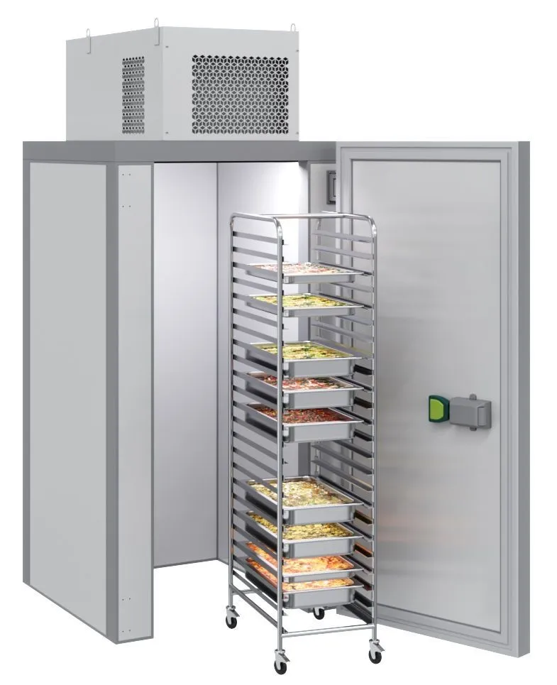 Холодильная миникамера Polair КХН-1,28 Minicella ММ без пола 1 дверь распашная — идеальное решение для сферы питания и кейтеринга. Благодаря разборно/сборной конструкции может устанавливаться в самых узких местах производственных и торговых площадей. Занимает минимум площади, при этом имеет большой внутренний объём. Модульная система сборки позволяет провести монтаж холодильной камеры легко и быстро. Моноблок устанавливается в паз потолочной панели. Комплектация модели включает: набор панелей и внутренний светильник; моноблок потолочного монтажа с автоматической системой выпаривания конденсата; дверной блок с уплотнителями, петлями и ручкой-замком.По запросу комплектация может дополняться комплект полок с кронштейнами и пандусом. Рабочие характеристики: рабочие температуры — -5...+5С; внутренний объём — 1,44 куб/м; толщина стенок — 80 мм.