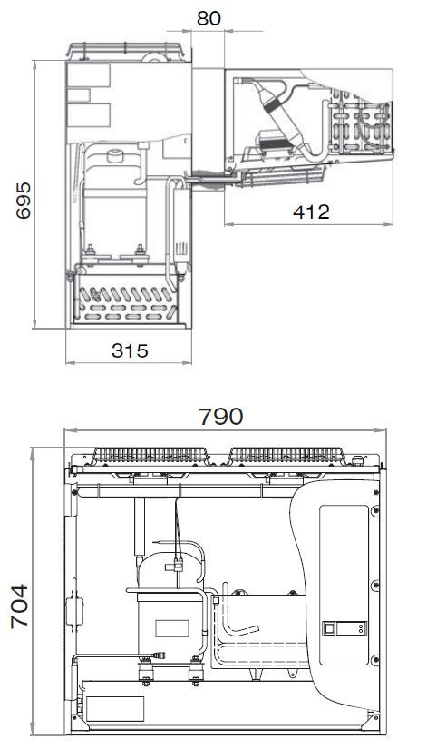 В моноблоках POLAIR Standard компрессорно-конденсаторный блок и воздухоохладитель соединены между собой термоизоляционной прокладкой из пенополиуретана.