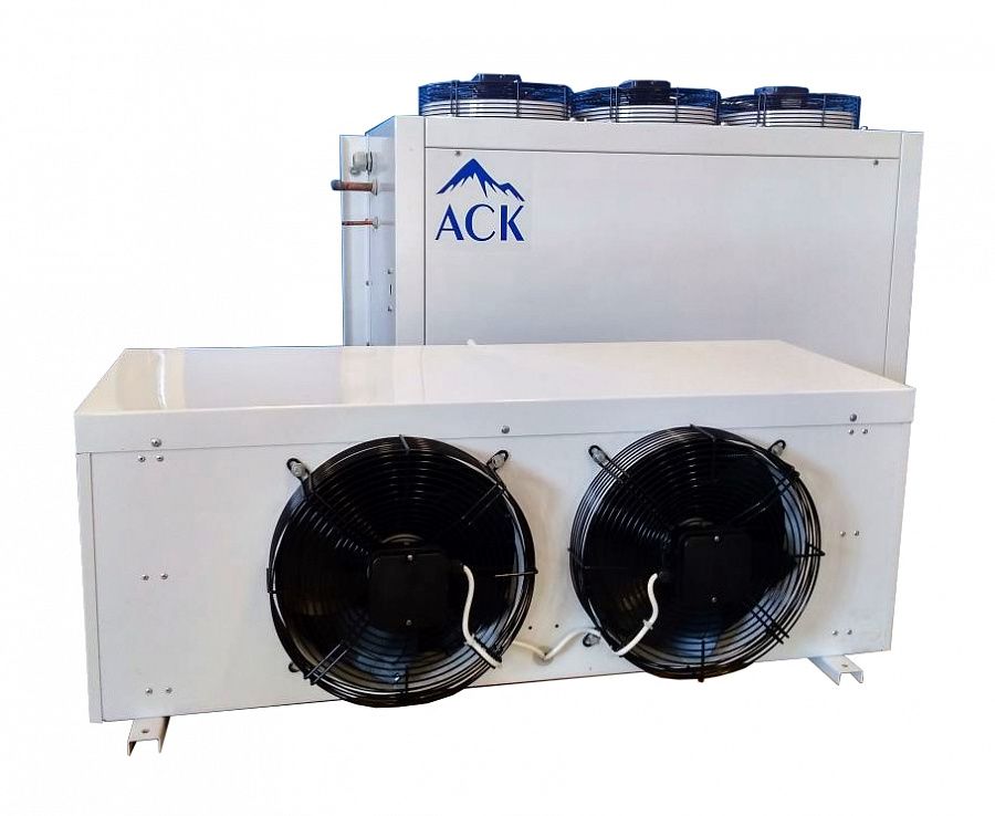 - Конденсатор и испаритель: ребристо-трубный с обдувом осевым вентилятором