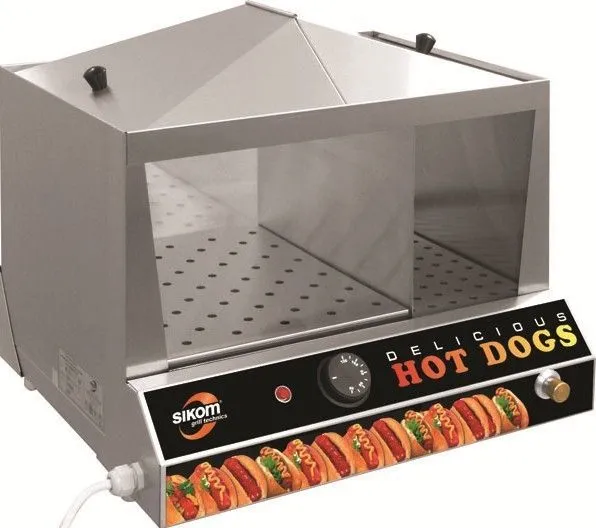 Корпус гриля для сосисок выполнен в виде герметичной ванны, которая продолжается высокими стенками, две из которых — стеклянные. В ванне расположен нагревательный элемент (ТЭН). Над ТЭНом, между двумя горизонтальными решетками, установлен поддон с поворотным шибером для контроля поступающего пара. Внутренний объем камеры поделен на две части: бункеры для закладки сосисок и булочек. Сверху гриль закрывается сдвоенной съемной крышкой, через которую кладутся продукты в отсеки. Органы управления и индикации расположены на боковой поверхности корпуса.