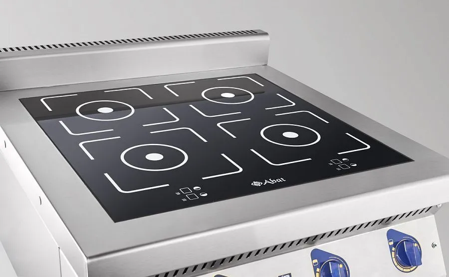Два индуктора фирмы E.G.O. (Германия) образуют нагревательные модули, по две конфорки на каждый. Диапазон нагрева — от 60 до 240 °C. Есть три режима работы: готовка, поддержание тепла и увеличенная мощность Boost.