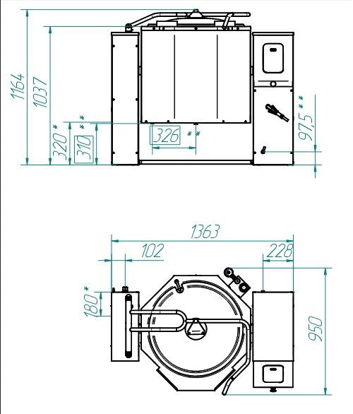 Слив готового продукта путем опрокидывания варочного сосуда с помощью электропривода
