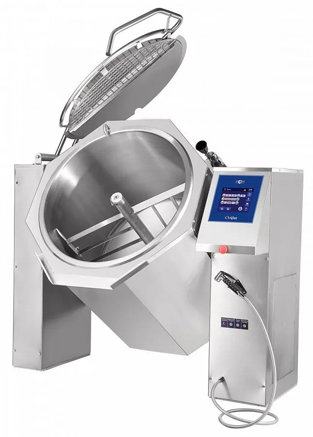 Котел пищеварочный опрокидывающийся КПЭМ-250-ОМП с миксером (TFT-экран, 250л, пар.рубашка, програм. управление)