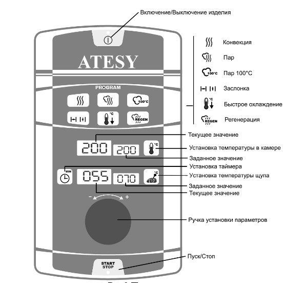 Пароконвектомат Атеси Рубикон Апк-10-1/1 это универсальная высокопроизводительная печь для приготовления в паровоздушной среде различных блюд на профессиональной кухне.