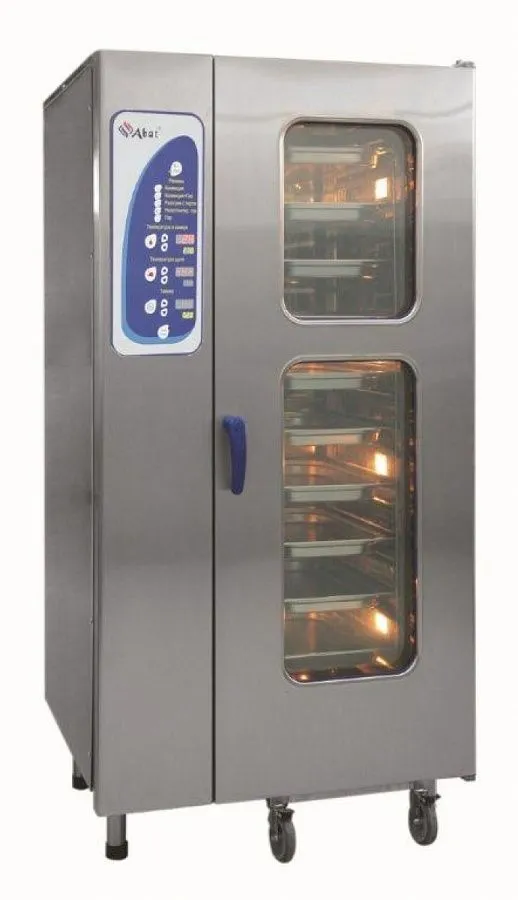 Пароконвектомат Abat ПКА 20-1/1 ПМ-01 предназначен для обжаривания, приготовления на пару, бланширования, запекания и других видов тепловой обработки продуктов на предприятиях общественного питания и торговли. Оборудование заменяет сразу несколько видов приборов: плиту, конвекционную печь, жарочный шкаф, духовку, опрокидывающуюся сковороду, пищеварочный котел, фритюрницу и др. Приготовленные в пароконвектомате блюда сохраняют все полезные вещества. Модель оснащена подсветкой, легкосъемным жировым фильтром и дверью с двойным остеклением.