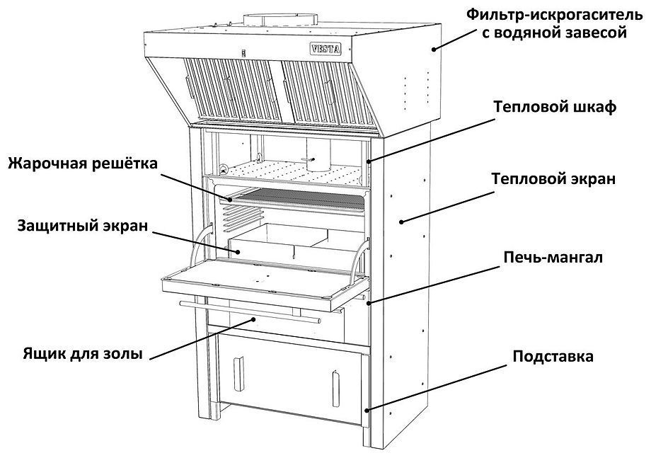 - Боковые направляющие устанавливают жарочную решетку в 5 положениях по высоте