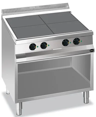 Плита электрическая Apach APRE-89QP предназначена для приготовления различных блюд из мяса, птицы, рыбы и овощей в наплитной посуде на предприятиях общественного питания и торговли. Модель оснащена электромеханической панелью управления, быстро нагревающимися конфорками, гидроизолированной прессованной поверхностью и открытой подставкой с регулируемыми по высоте ножками. Корпус, рабочая поверхность, панель управления и вытяжная решетка выполнены из нержавеющей стали AISI 304, боковые и задняя панели - из нержавеющей стали AISI 430.