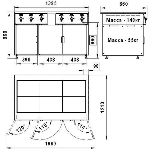 нижний модуль – нейтральные шкафы, масса 55 кг.