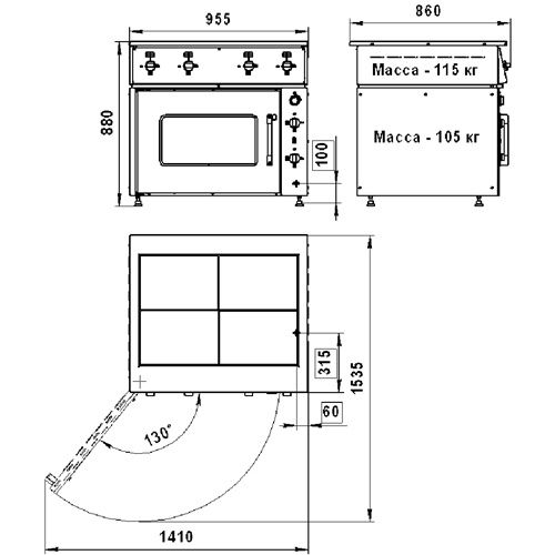 верхний модуль – плита с конфорками, масса 115 кг