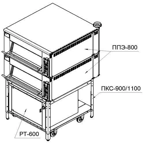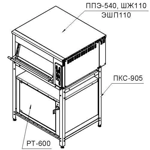 Шкаф может поставляться как отдельное технологическое оборудование, так и в комплекте с одно- и двухсекционными подовыми печами, типов ППЭ-800 и ППЭ-540, одно- и двухсекционными жарочными шкафами, типов ШЖ110, и шкафами жарочно-пекарскими, типов ЭШП110. В случае поставки в комплекте с подовыми печами и жарочными шкафами, шкаф устанавливается под подовую печь или жарочный шкаф на штатные подставки печей (ПКС-900/1100) или шкафов (ПКС-905).
