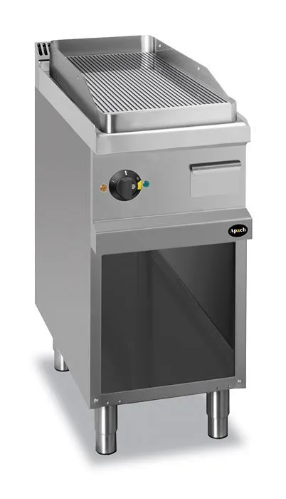 Сковорда откр. 700сер. Apach APTE-47PR предназначена для обжарки мяса, рыбы и овощей на предприятиях общественного питания и торговли. Модель с закругленными краями и бортами оснащена электромеханической панелью управления с терморегулятором и 2 световыми индикаторами, выдвижным лотком для сбора остатков пищи, масла и жира и открытой подставкой с регулируемыми по высоте ножками. Корпус, панель управления и вытяжная решетка выполнены из нержавеющей стали AISI 304, боковые и задняя панели - из нержавеющей стали AISI 430, лоток - из нержавеющей стали.