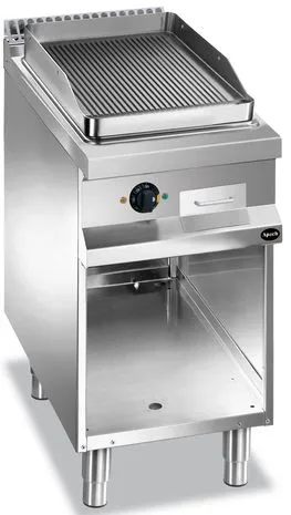 Сковорода электрическая Apach APTE-49PR предназначена для обжарки мяса, рыбы и овощей на предприятиях общественного питания и торговли. Модель с закругленными краями и бортами оснащена электромеханической панелью управления с терморегулятором и 2 световыми индикаторами, выдвижным лотком для сбора остатков пищи, масла и жира и открытой подставкой с регулируемыми по высоте ножками. Корпус, панель управления и вытяжная решетка выполнены из нержавеющей стали AISI 304, боковые и задняя панели - из нержавеющей стали AISI 430, лоток - из нержавеющей стали.